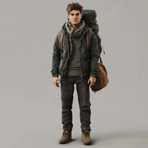 an ultra-realistic, full body portrait of a person showing the whole body from head to toe with the following traits: an ultra-realistic, full body portrait of a person showing the whole body from head to toe with the following traits: Normal clothing, practical and functional. Well built. Hairstyle still a little too well-behaved. A bit laid-back, not a failure, happy with himself, gathers his knowledge by observing the world and other people, naturally healthy, solid basic fitness. Backpack, but not too big. Confidence inspiring, experienced, calm, positive, could be a little more relaxed. Hands in his pockets, still has a lot planned. Well dressed for the mountain, luggage optimized. freedom, uniqueness. Attractive and strong, but not overpumped. No chains and jewelry. Natural, beautiful without wanting to be beautiful, mysterious, no make-up, wild hair.