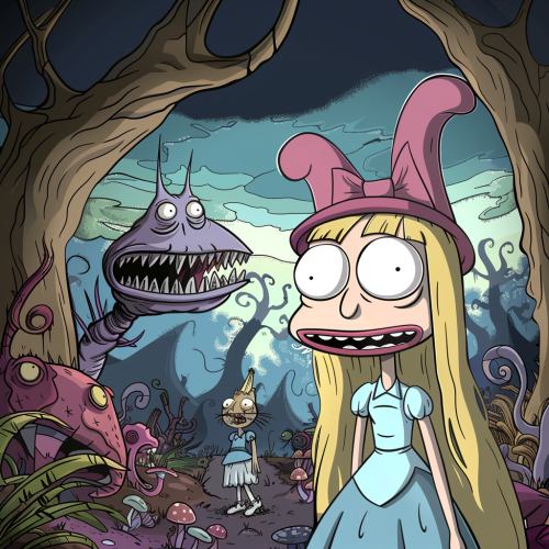 Henri Matisse style bright detailed oil painting,A design for an illustration of Alice in wonderland a big curly long hair girl and rabbit holding flowers