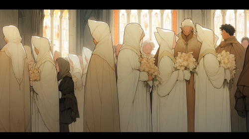 The antic Egyptian death ceremony in the style of Moebius (Jean Giraud) - Unique, detailed line work --niji 5 --chaos 100 --ar 16:9 --s 700