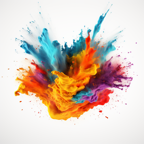 Explosion of colorful powder particles in clusters, abstract wallpaper, white background, high resolution.