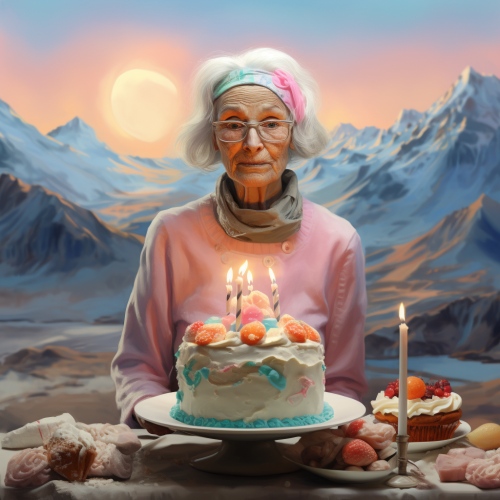 A gorgeous woman jumping out of a big birthday cake, balloons and confetti, celebration , bold colors, brushwork and airbrush, multiple flash, expressive and cute, --ar 3:5 --s 200 --v 5.1