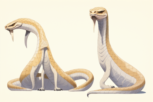 anthrocobra, reptilian, snake tail, character design sheet, facing the camera, orthographic full view, front and back views, studio ghibli --ar 3:2 --no text