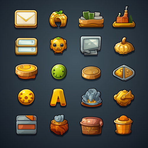 Gaming 2d icons assets, icon of money packs, icons in the style of casual mobile games --s 50 --v 5.2
