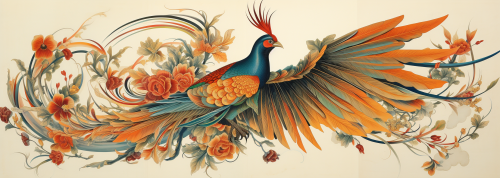Exquisite phoenix designs flying with delicate feathers and ribbons.