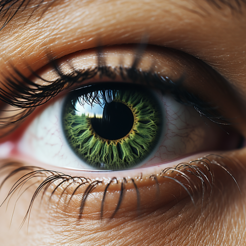 lifelike photography of a beatiful green eye in middle range where you can see eyebrow