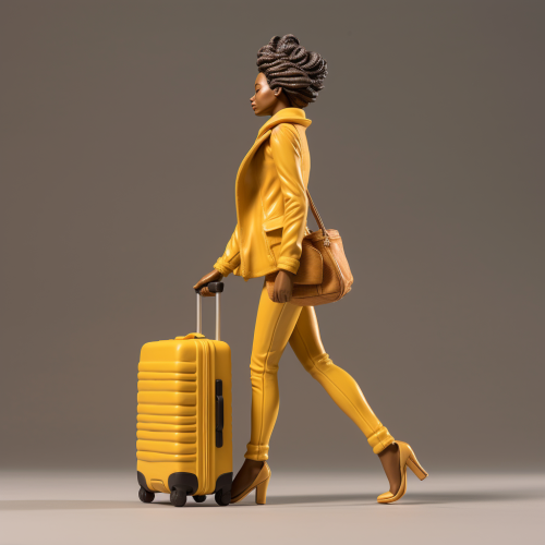 Ezinne, Nigerian midwife, aged 54, walking with luggage.