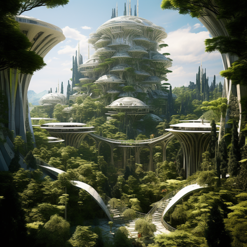 alien civilization The buildings were incredibly elegant and of an architecture very unlike Earths. Everything was curved, clad in a bright silver, with no windows at all. a city of metal shells, with structures and forms that interlocked as they floated well above the surface. The ground itself seemed to be entirely jungle, not just forest, but a wild, primordial jungle. There was bird life, but the canopy blocked any view of the type of animals you might find there.