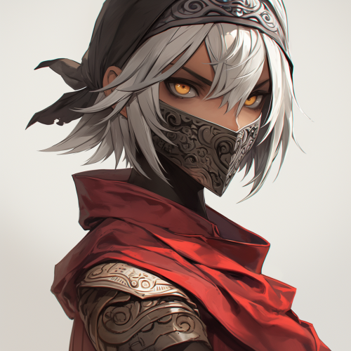 Mycenaean girl with silk and steel mask, glowing eyes without iris, dress in red tunic adorned with silver motifs, victorian era fantasy, very detailed, fantasy character, d& d character, artstation, concept art, smooth, sharp focus --niji 6 --p 4odw11f