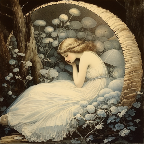 The fairy sleeps in a shell. Fairytale , ida rentoul outhwaite style --v 5.2