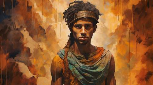 The Cedars of Babylon bend their large trunks slightly to bow to the Lord Jesus Christ as he walks towars them. They are tall and majestic but slightly bowed to pay respect to Jesus Christ. Paint it in a traditional oil painting style.