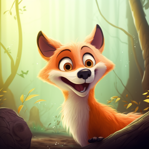 a young frightened red fox, looking away, cartoonish, pixar like styling, looking back, scared --style raw --s 50