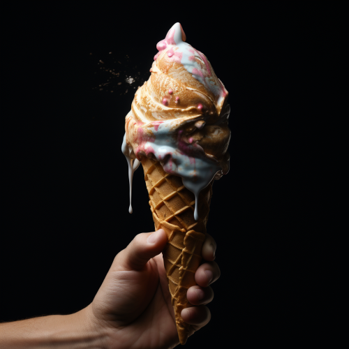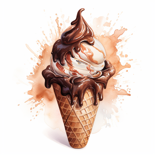 short ice cream cone, filled with chocolate coating, watercolor painting style