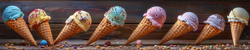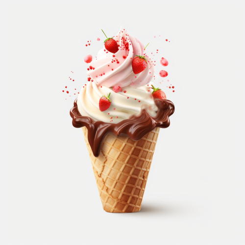 Chocolate, vanilla and strawberry Ice cream with topping in the cone on transparent background