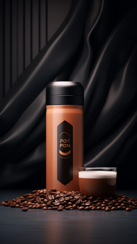 coffee and protein brand photo, photorealistic, luxury minimalistic background, --ar 9:16