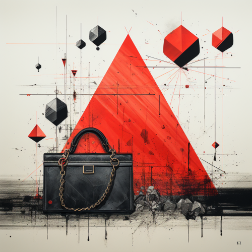 illustrating the value of famous products and brands in form of a minimalistic drawing, modern art and abstract elements, minimalistic style, red and black colors --s 750