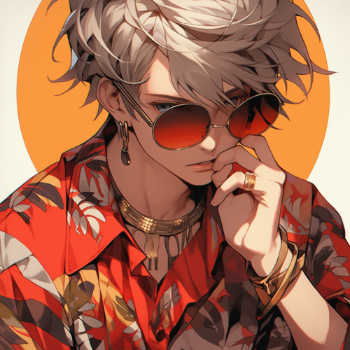 a cool young dude, musician, face shot , front , grayish hair wearing big sunglasses --s 250 --niji 5