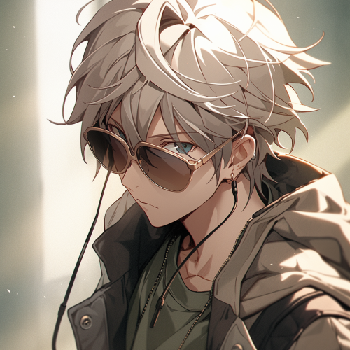 a cool young dude, musician, only face shot grayish hair wearing big sunglasses --s 250 --niji 5