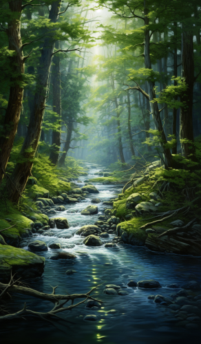 Fantastic, clean forest and river, bright, fantastic, mysterious --ar 7:12