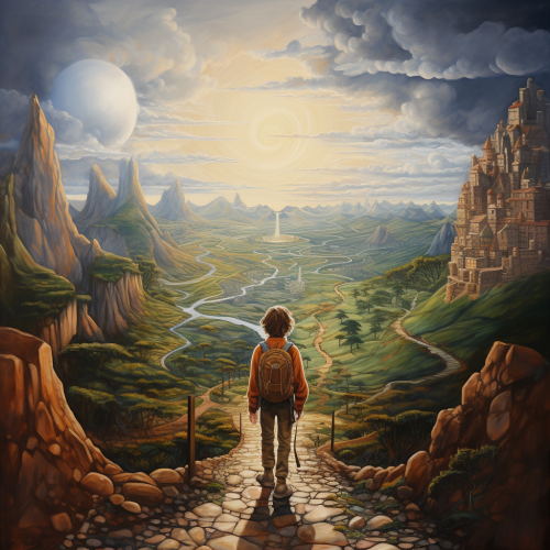 An ethereal music Visual effects 5VFX° image with Epic odyssey, Pixel design, Pixelation filter, music style Panoramic view --v 6.0 --c 15 --ar 5:7 --s 750