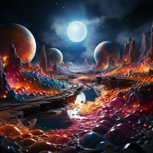 3D image of a fantastical and colorful planet created by imagination that would be inhabited by imginary friends. --style raw --s 750