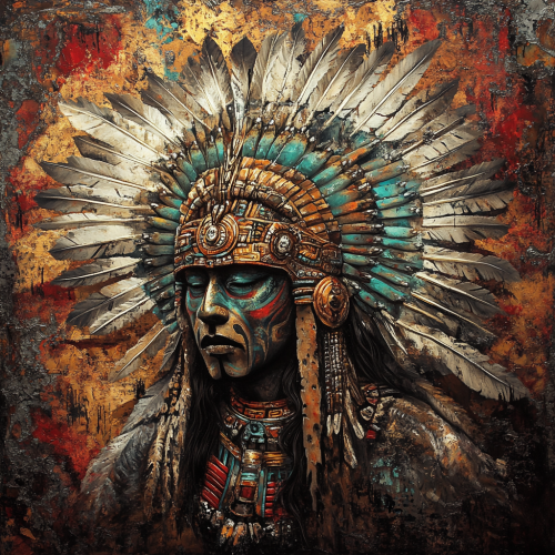 native american theme, no people, Dark hypnosis of the mind, horror concept art in the style of dark fantasy, detailed background elements, a colorful palette with silver, rusted copper and gold hues, eldrich style abyssal landscape, no people or figures. In a highly realistic illustration style, high resolution, high detail, and high quality, oil painting --v 6.1