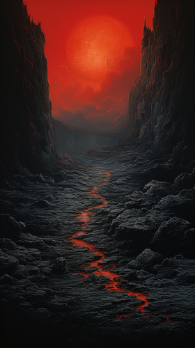 1970's dark fantasy book cover paper art dungeons and dragons style oil on linen painting of Karlach Cliffgate the female tiefling from the Forgotten Realms and Baldurs Gate 3 video games with minimalist far perspective --ar 9:16