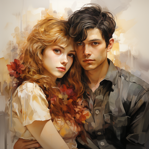 a cute couple, boy and a girl, korean style, couple in love in Gustave Moreau artwork, expressive color, soft atmosphere, magical impressionism, a sense of awe and surreal, fantasy, regal, fractal gems, by stanley artgerm lau, greg rutkowski, thomas kindkade, alphonse mucha, loish, norman rockwell, Rob Hefferan, watercolored pencil --s 750