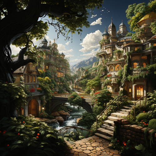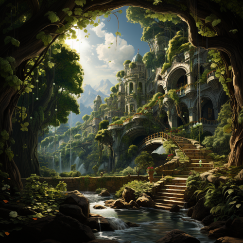 Concept Art, a fertile garden with lots of trees full of [fruits]:: 2 , fantasy --s 750