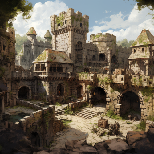 a D&D castle ruin that has been restored into a keep with a courtyard for a village.