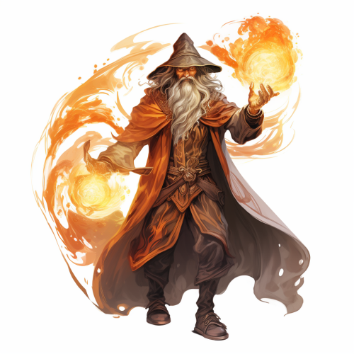 fantasy drawing of a good sorcerer, full body, friendly, warm colors, white background