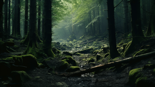 fantasy forest close-up, Sun rays shine through the treetops, retro, nightmarish, blue red green COLORS, green smoke, strange light, glow in the dark, oil painting masterpiece, adding a touch of realism and depth, --ar 2:3 --stylize 90 --v 5.2