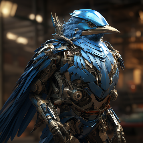 blue bird inspired soldier, superhero, blue jay bird, wielding a bow and arrow, with high tech blue mechanical wings --s 250