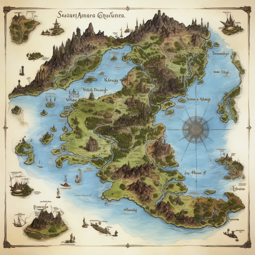 A handdraw map, 3 same size but distinct islands, 1 kingdom gateway
