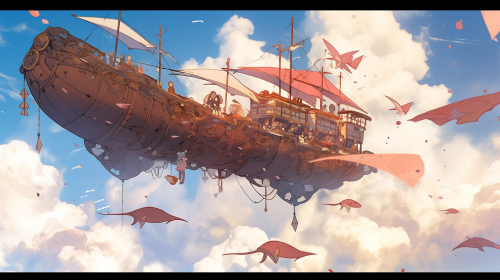 Fantasy. Airships.a detailed illustration of, --niji 5 --aspect 16:9