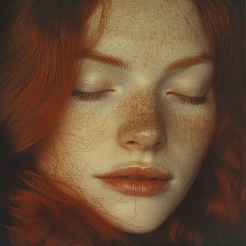 expressive head-portrait of a beautiful fiery-haired woman, hair in the wind, painted in red, orange and yellow, modern oil painting, dynamic wide brush strokes --ar 3:4 --s 250