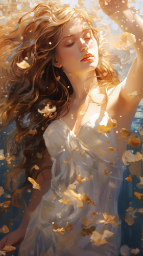 [1fd457504] a girl ,burning particles ofice, hairs floating as if they were in the waterethereal beauty,intricate 、Surrounded bycolorful waves and plants, there is a dreamy delicateface, masterpiece, sparklingbubbles, soft colors,joint, surreal, painting, richdetails, gorgeous light and shadow, 8k, Best perspective,korean wen yi drei osu et oyako, in the styleof fantasy art, fashionable opulence,Happy smile realisticchiaroscuro, fairycore, elaborate costumes, --v 5.2 --ar 9:16 --c 0 --style raw