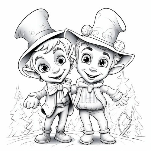 black and white coloring book elves, the Grinch and Frosty the Snowman--v5