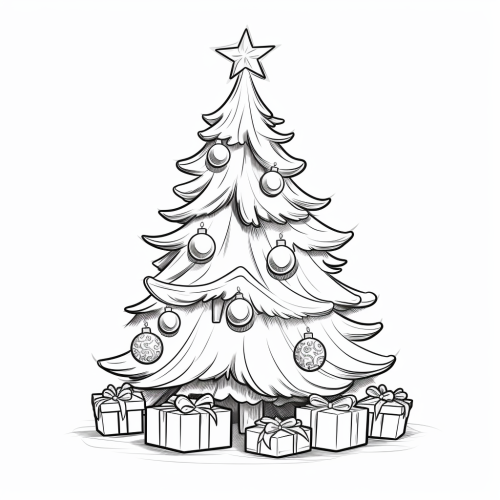coloring book for kids, christmass tree, cartoon style, thick lines, low detail, no shading--ar 9:11