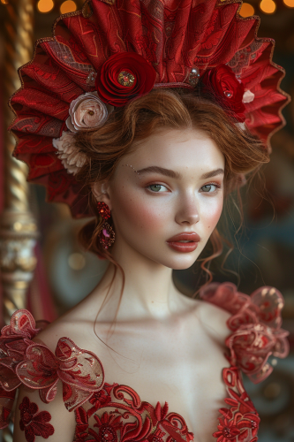 cinematic, evil middle-aged Chinese woman, slim, she grins with a crazy look, crazy look, she walks towards the camera, she wears a red dress decorated with gold, she throws gold coins around, she throws coins, old, archaic Chinese city, hyperrealistic, 8k --ar 16:9 --v 6.1