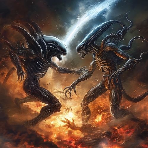 Aliens, alien, xenomorph, Nat Jones, alien print, tiger, horror, sci-fi, gothic art, monster art, movie art, comic book --ar 9:16
