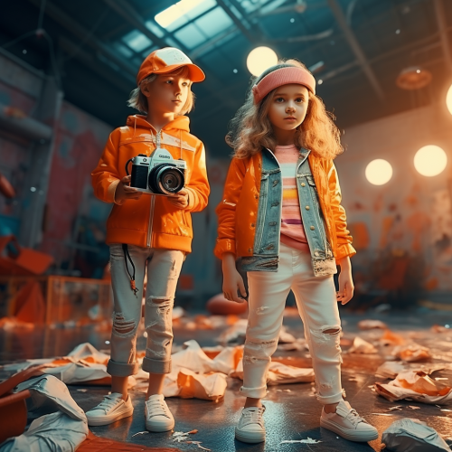 Fashion-forward 4K photo of kids in luxe sportswear.