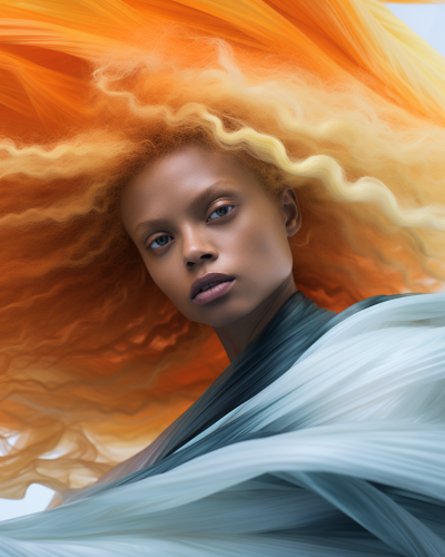 Blurred Film Still, Blur Motion, High Fashion Photoshoot, Albino African Models merging into Oceanic Waves, High Fashion Dresses transforming into surreal waves, with vibrant colors,Electric Storm, Big Hair, Film Poster, Photo Realism, Fuji Film, Ultrarealistic HD, Cinematic, frameless, 12mm film, --ar 4:5 --v 5.2