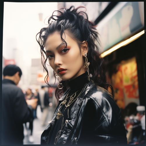 1999 Polaroid, Tokyo Harajuku fashion, street photography, fashion shoot, fujifilm, 35mm lens, cinematic, Japanese fashion photography --s 250