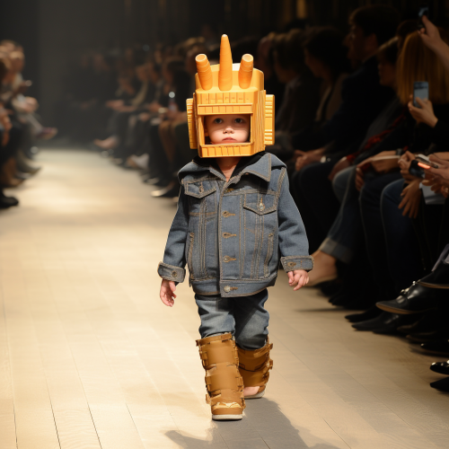 null A super cute baby dressed as a strawberry, walking on the Paris Fashion Week runway, with a big happy smile, front view, the runway is filled with applauding audience, realistic style, camera quality, full-body shot. --ar 9:16 --v 6.1