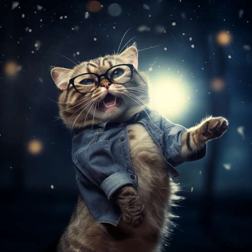 crazy cat with glasses in a brilliant glimpse dancing in the moonlight fun