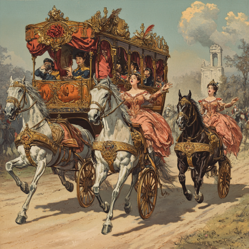 Fearful Girls Waving from Colliding Carriages, Galloping Horses, Servants, Feathers, Comics