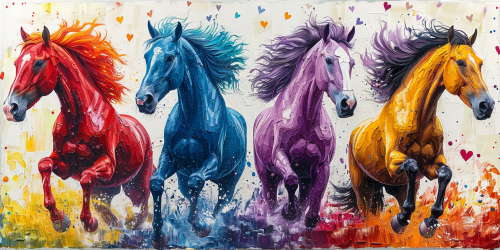 horses and white hearts, bright colors --v 6.0 --s 750 --ar 2:1