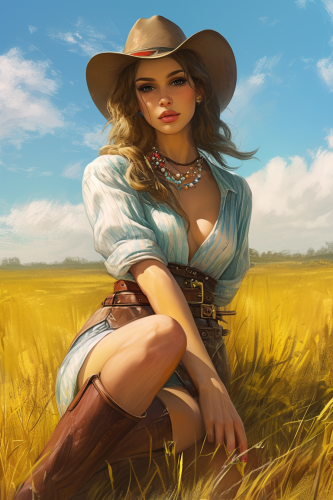 Country Woman, athletic body, full body, Photograph, glamorous pin-ups, ultra realistic, highly detailed, --ar 2:3 --s 50 --niji 6