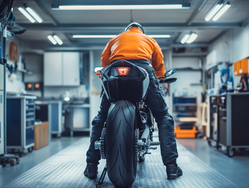real life, bicycle mechanic repairing bicycle in workshop --ar 16:9