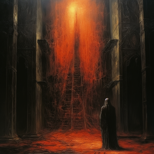 a full body shot of a female warhammer 40k sister of battle. She wears dark grimdark power armor. Her face is visible. In the background is an underground dark grimdark gothic cathedral in a hive city with llights. digital painting --ar 2:3 --v 6.1